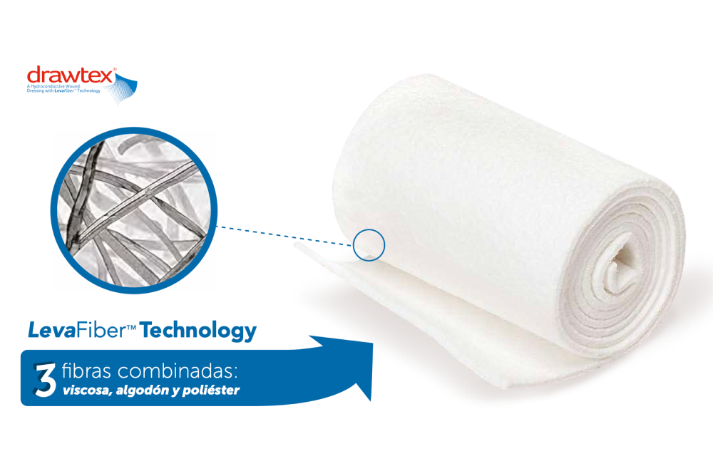 Drawtex actúa mediante un sistema físico avanzado que permite mover fluidos y residuos fuera de la herida de forma constante.