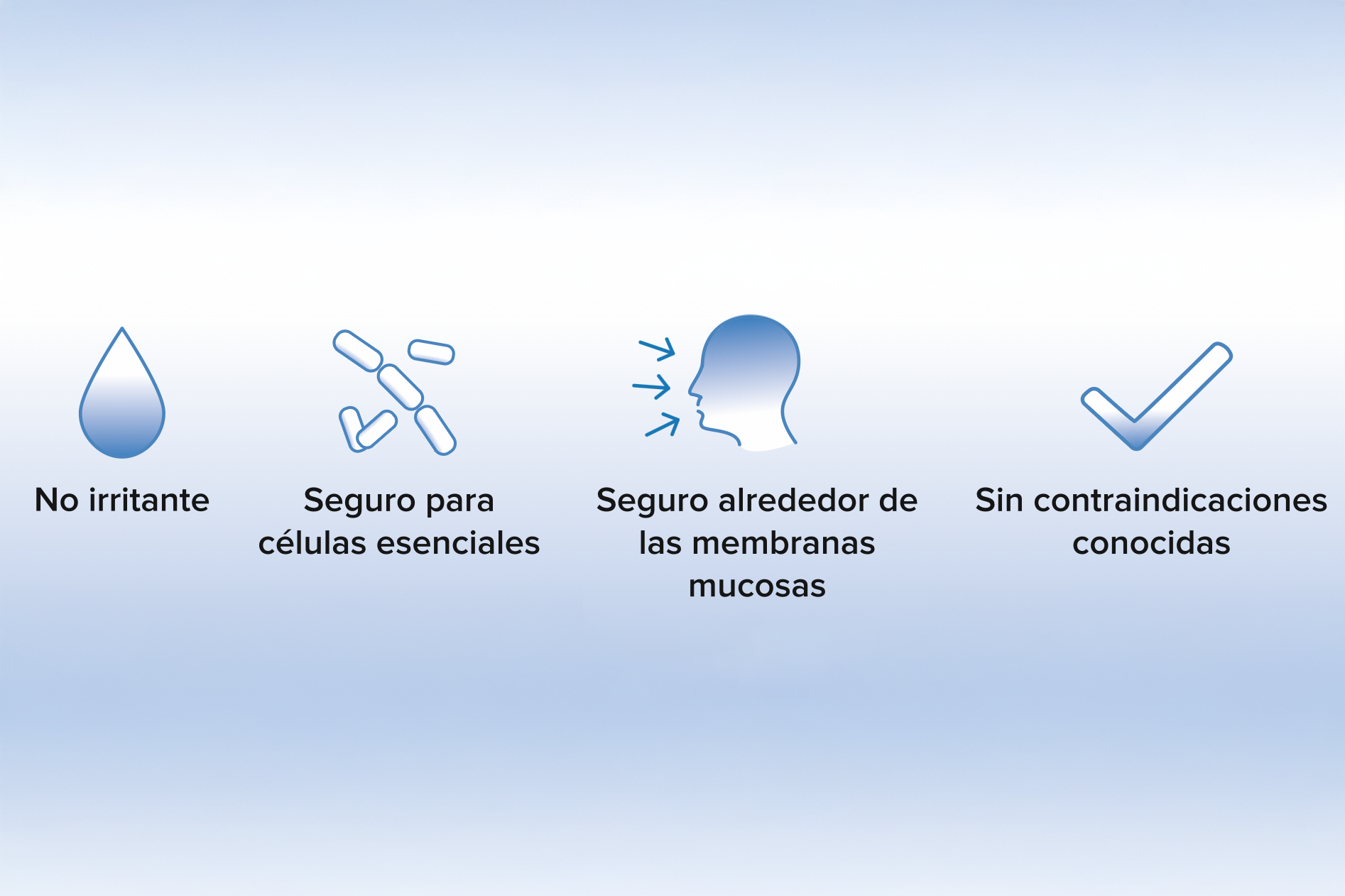 Gracias a su pH fisiológico (5,5) y a su alta concentración de ácido hipocloroso puro, elimina bacterias, hongos, virus y biofilm, sin generar daño celular ni retrasar la cicatrización.